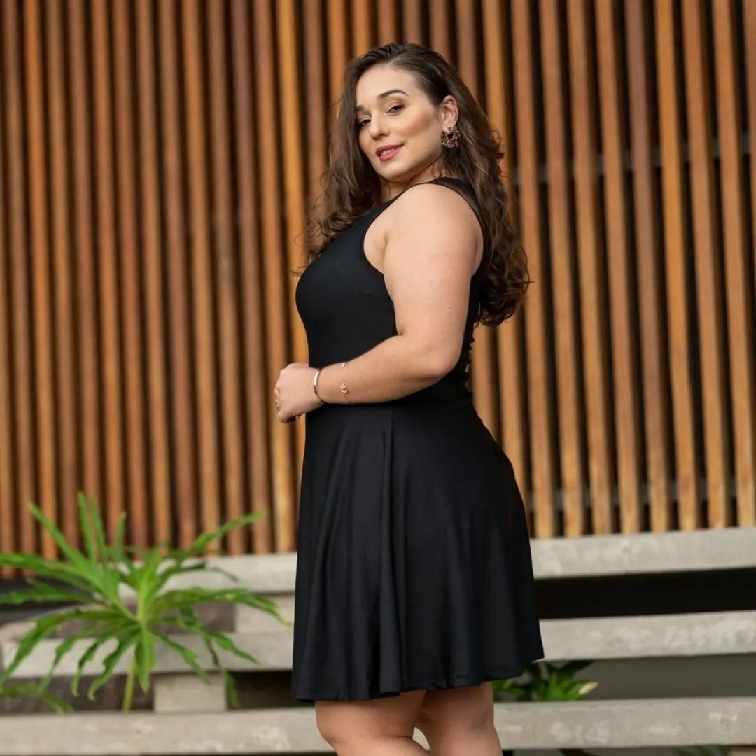 “O corte evasê faz toda a diferença, valoriza muito o corpo.”